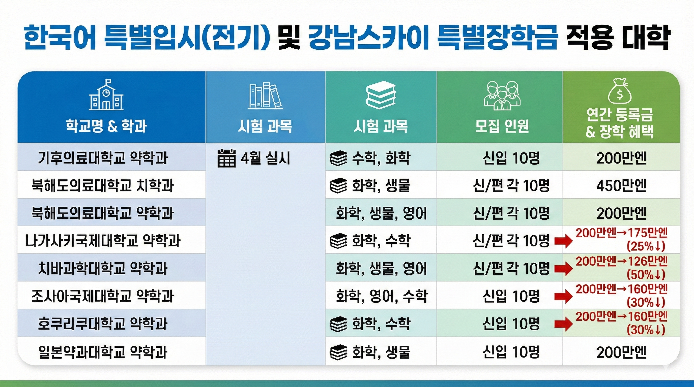 2026년 4월 치대,약대 특별입시안내일본치대, 약대 시험을 한국어로 본다(2026년4월실시)