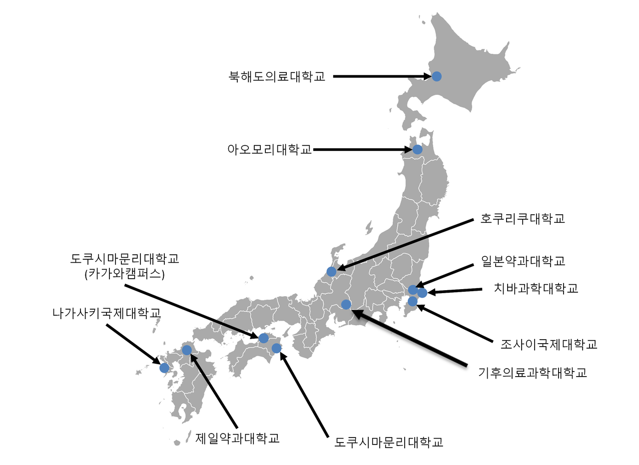 현재 일본 9개의 약대, 치대, 수의대와 협력관계를 맺고 학생을 유학시키고 있으며